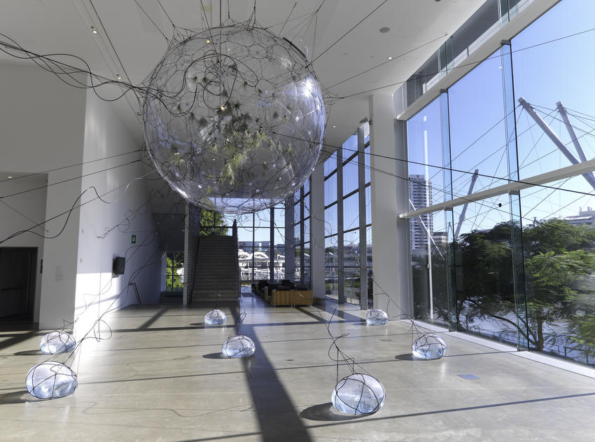 Tomás Saraceno / Argentina b.1973 / Biosphere 02 2009 / PVC, rope, nylon monofilament, acrylic, plants (Tillandsia), air pressure regulator system, hydration system / Purchased 2014 with funds from Tim Fairfax, AC, through the Queensland Art Gallery | Gallery of Modern Art Foundation / Collection: Queensland Art Gallery | Gallery of Modern Art / © Tomás Saraceno