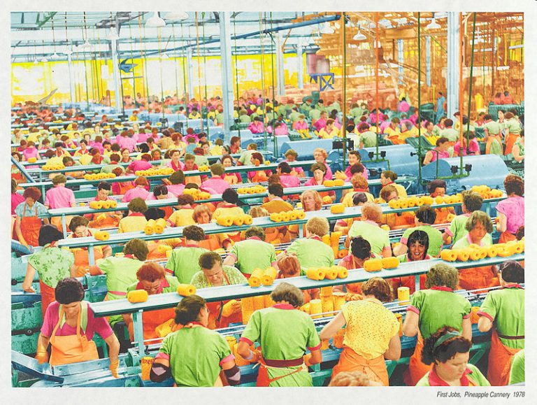 Tracey Moffatt / Queensland Australia b.1960 / First jobs, pineapple cannery 1978 (from ‘First jobs’ series) 2008 / Archival pigments on rice paper with gel medium / 66.5 x 88cm / Gift of Patrick Corrigan AM through the Queensland Art Gallery Foundation 2010. Donated through the Australian Government’s Cultural Gifts Program / © Tracey Moffatt