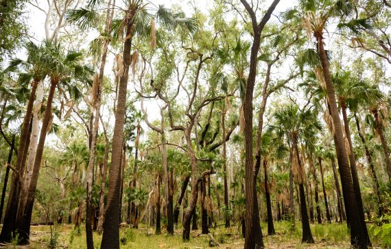Livistona nitida is so abundant in the area that it has become known locally as the Carnarvon fan palm or Carnarvon Gorge cabbage palm. The threatened native thistle (Stemmacantha australis) lives within this expanse of Queensland bluegrass (Dichanthium sericeum).
