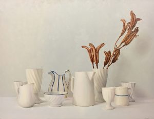 1. Random house 2009 / 2. Fig bowl 2011 / 3. Red jug and kangaroo paw 2018 / 4. Jug jug bowl 2018 / 5.  Jug and protea 2018 / 6. Jug still life 2018 / 7. Frangipanis 2018 / 8. Jug and Artichoke flower 2018 /  9. Rocky road 2018